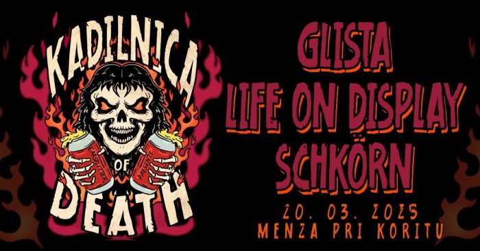 Marčevsko kadilnico bo zasedla peteroglava ljubljanska grind zasedba Glista, zasavski heavy metalci Life on Display in Schkörn – novonastali blackened sludge duo iz Vrhnike. Se vidimo pod odrom!
