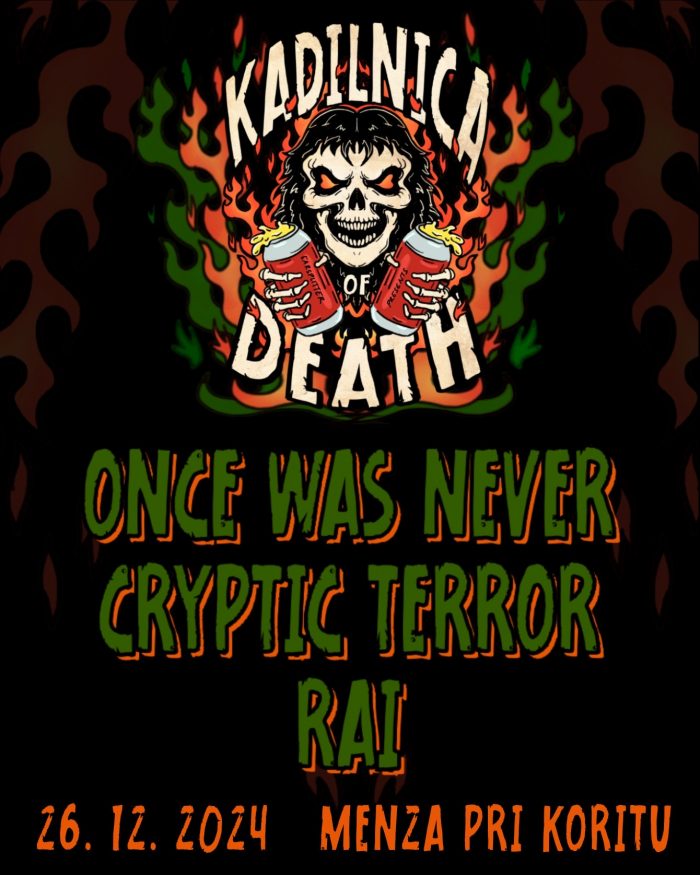 Zadnjo Kadilnico leta 24′ bodo z nami kadili sežanski Once Was Never, bistriški death metalci Cryptic Terror ter novonastali progresivci RAI.