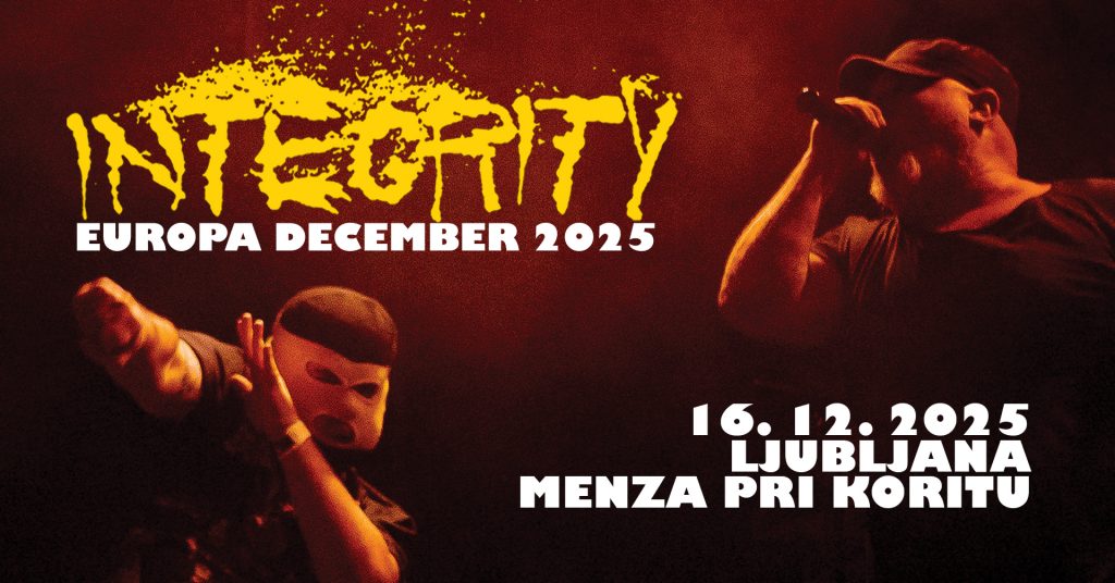 Legendarna hardcore/metal skupina INTEGRITY prihaja v Ljubljano! Ikone hardcora, ki že od 1988 premikajo meje agresivne glasbe, bodo s svojo surovo energijo, industrijsko temačnostjo in nepozabno prezenco pretresli Menzo pri Koritu.