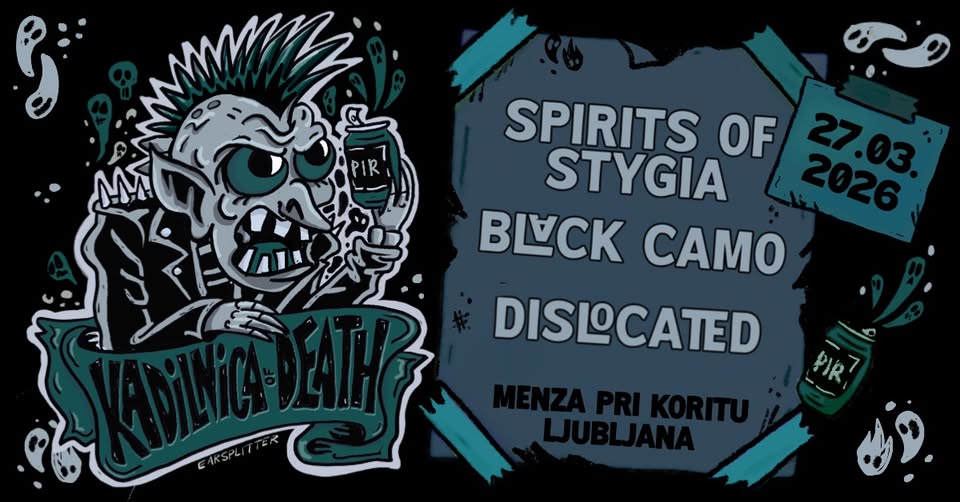 Kadilnica of Death: Spirits of Stygia, Black Camo, Dislocated (Petek, 27.3.2026 ob 20h) March 26, 2026April 4, 2026 netu01 KADILNICA OF DEATH!!! Vstopnina: 10€ Za mladoletne vstop prost! Za lastnike članske izkaznice KoD vstop prost!